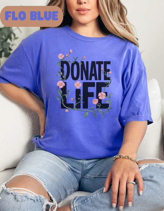 Comfort Colors Floral Donate Life Shirt, Organ Donation Shirt, Organ Donor, Organ Transplant, Heart, Liver, Kidney, Lung, Living Donor, RN