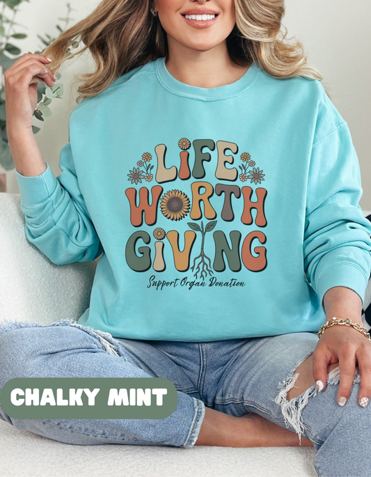 Life Worth Giving Organ Donation Sweatshirt, Comfort Colors Boho Donate Life, Transplant Gift, Green Ribbon, Living Donor, Kidney Transplant