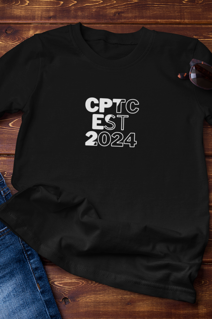 Our CPTC Certification Est. 2024 T-Shirt comes in a range of sizes to ensure a comfortable fit for everyone.