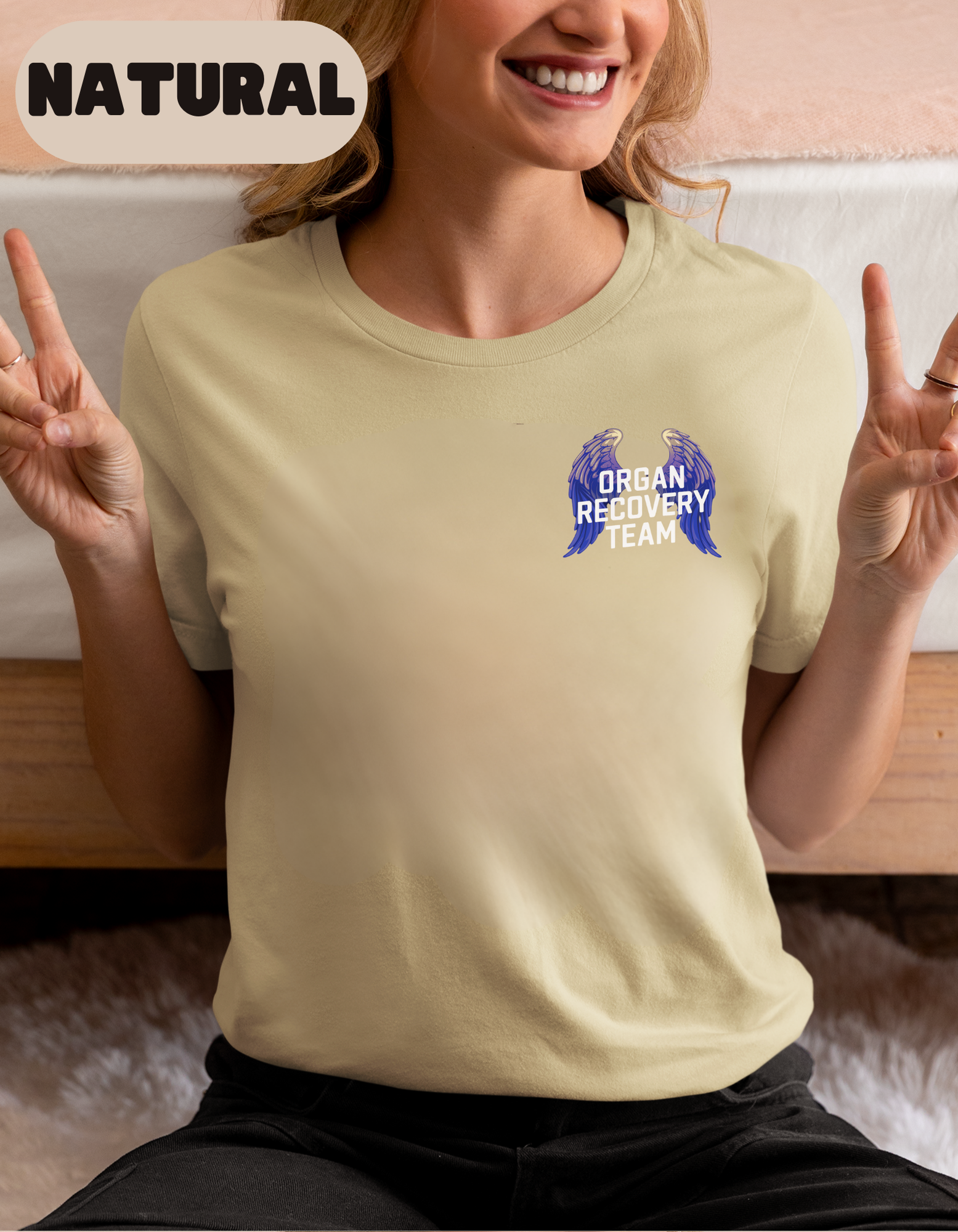 Perfect as a thoughtful gift for organ transplant teams, healthcare professionals, or as a way to show support for organ donation awareness. This t-shirt is a meaningful tribute for those in organ recovery and transplant coordination and makes a memorable gift for anyone passionate about saving lives.