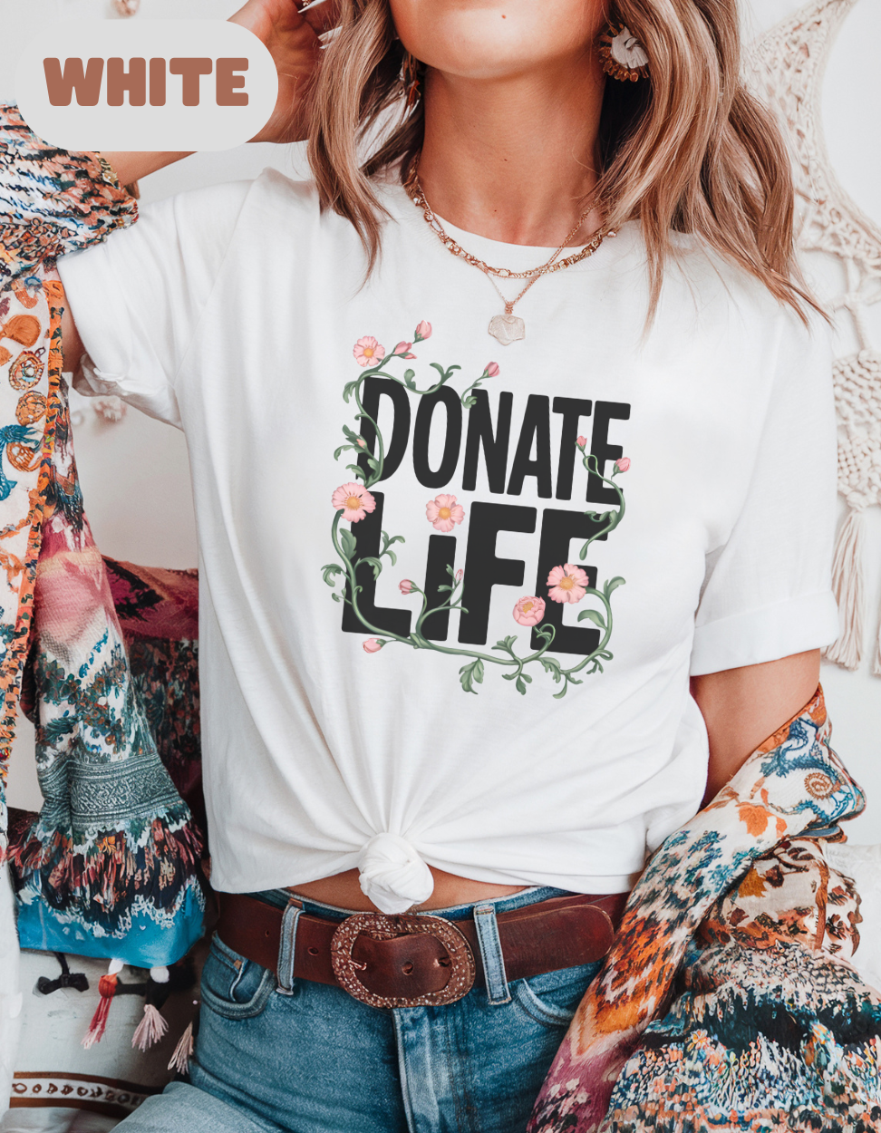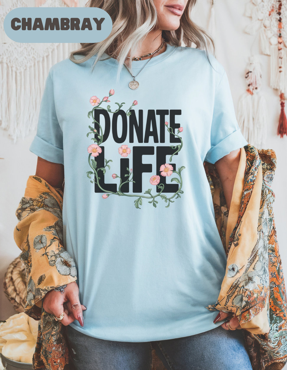 Floral Donate Life Shirt, Organ Donation Shirt, Transplant Awareness Gift, Living Donor Tee, Kidney Liver Heart Lung Transplant Survivor