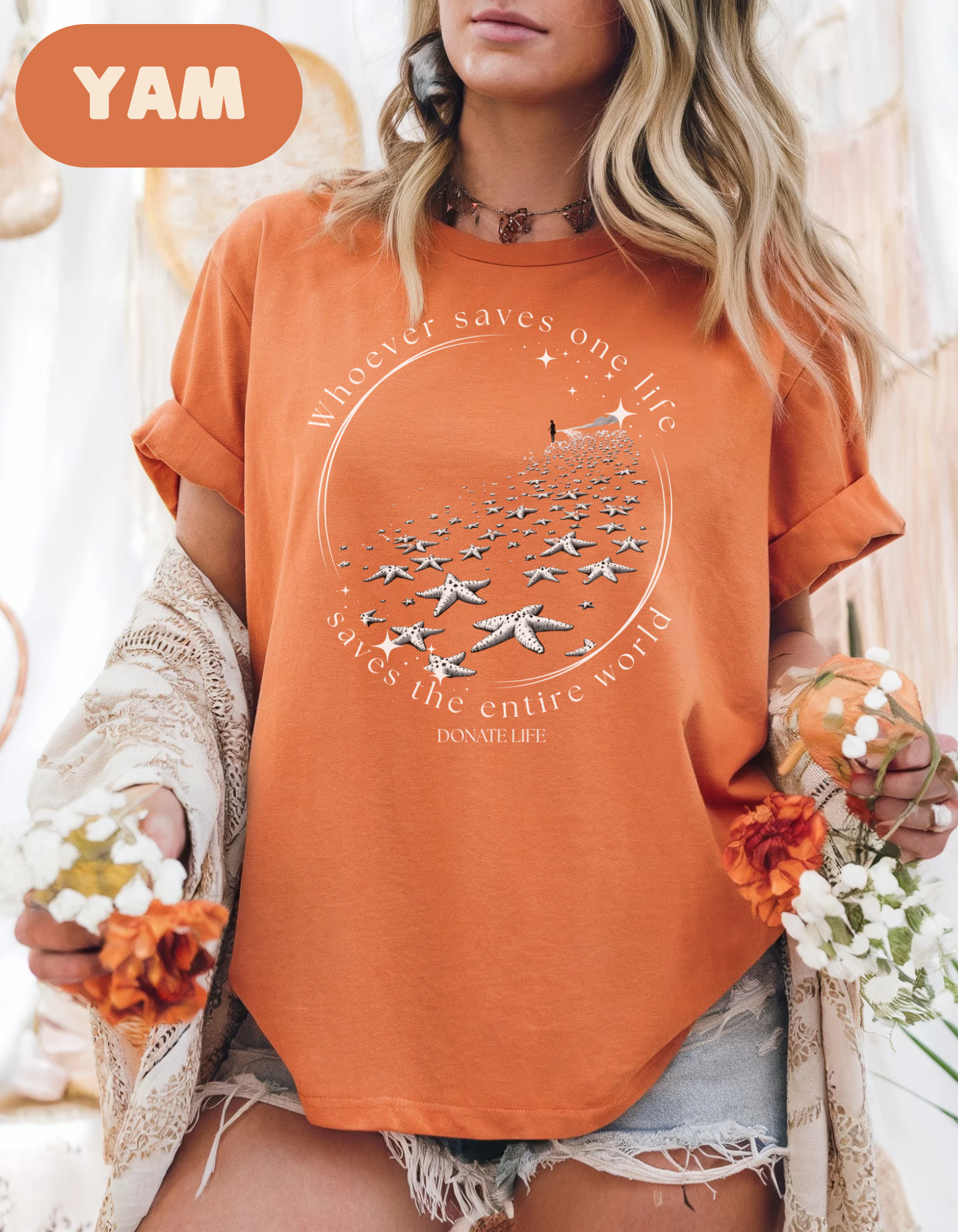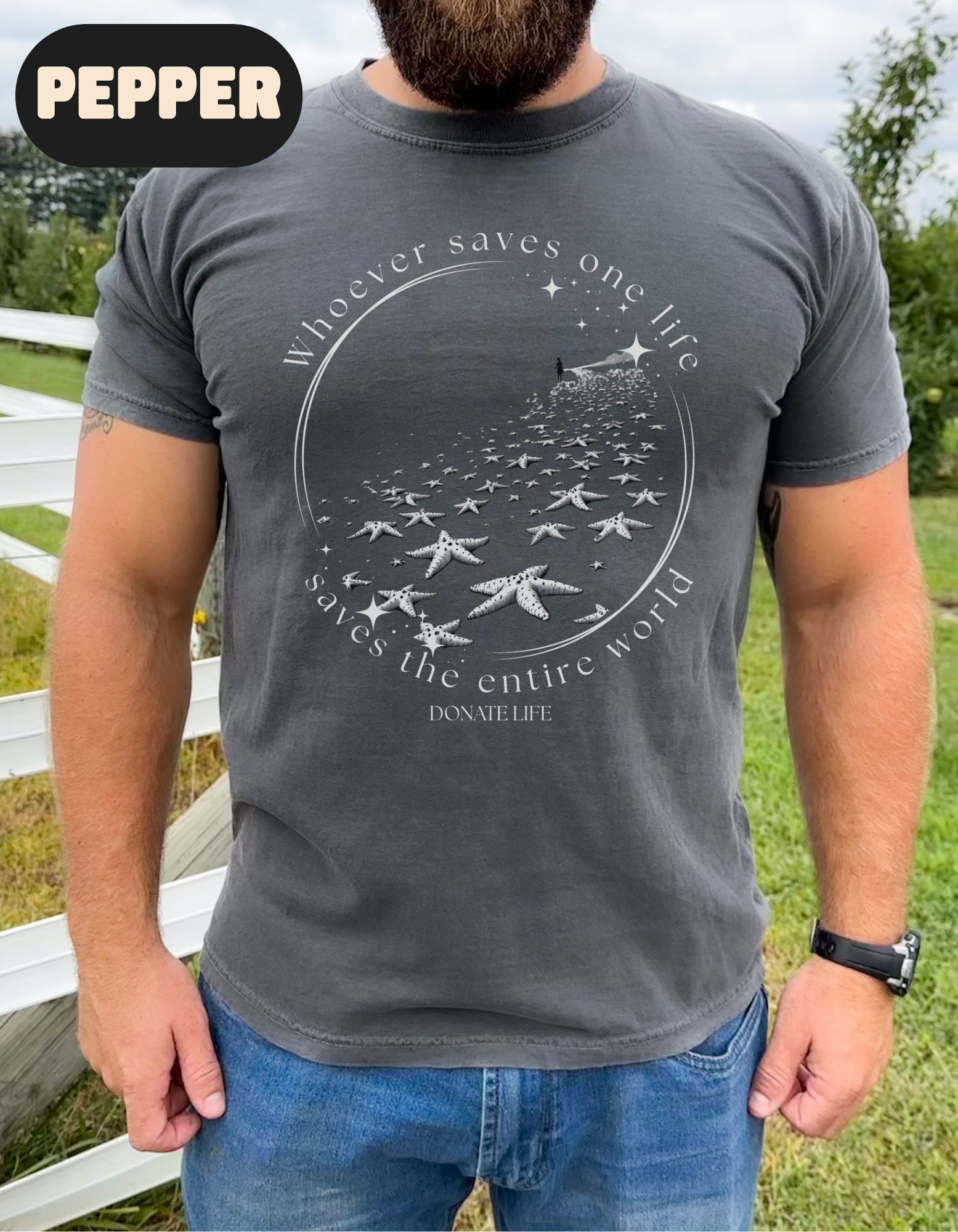 Whoever Saves One Life Saves the Entire World Shirt | Donate Life Shirt | Organ Donation Awareness Tee | Living Donor Gift | Transplant Support T-Shirt Celebrate the power of saving lives with our “Whoever Saves One Life Saves the Entire World” Donate Life Shirt. Perfect for organ donors, recipients, and healthcare heroes, this unisex Comfort Colors tee delivers a meaningful message with a soft, relaxed fit. Whether you're a kidney, liver, heart, or lung transplant recipient, a proud living donor, or someone who supports donor awareness, this shirt honors your journey and the lives touched along the way. Adorned with a starfish-inspired design symbolizing the ripple effect of one good deed, this tee is ideal for doctors, nurses, transplant teams, and families who have been part of the donation journey.